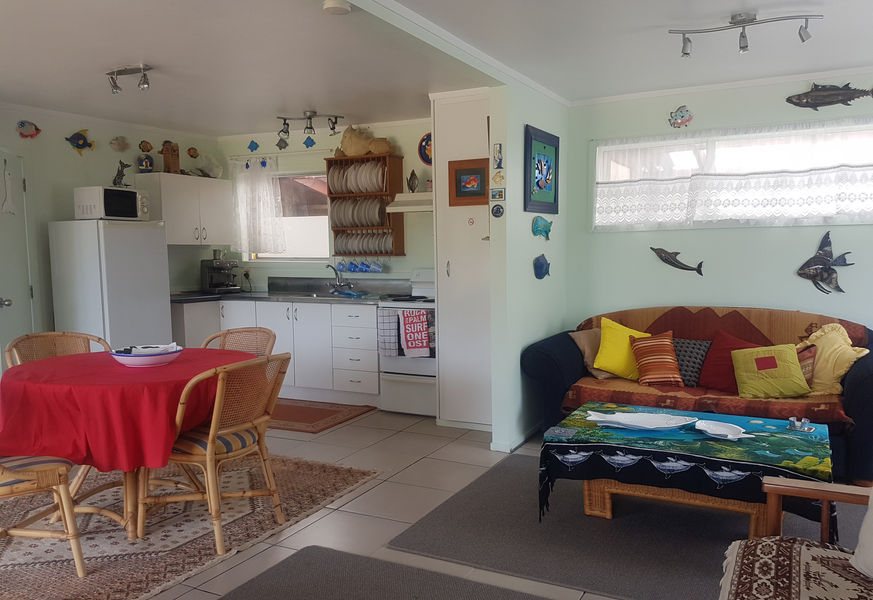 This quintessential kiwi beach bach works great for a family or a group of friends alike. The delightful fish-inspired theme throughout sets the tone for a laid-back seaside escape - whether that's chilling on the sand, surfing the waves, or catching dinner from out in the boat (option to dine in at Whangaroa Sport Fishing Club or drive to Mangonui for fish & chips if you're unsuccessful!).